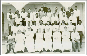 Frère Alban, a figure of medium stature with bespectacled eyes, was distinguished by the bluish hue of his shaven face. His attire was emblematic of rural France, with sandals and white socks that seemed foreign to Haitian soil. The Frères’ uniform was a long white Soutane (Cassok), reminiscent of a Nehru suit, clasped tightly at the neck and adorned with a sizable black and silver cross, the emblem of their order. Only Frère Louis, who presided over the other 11ème class, deviated from this tradition with a black Soutane.